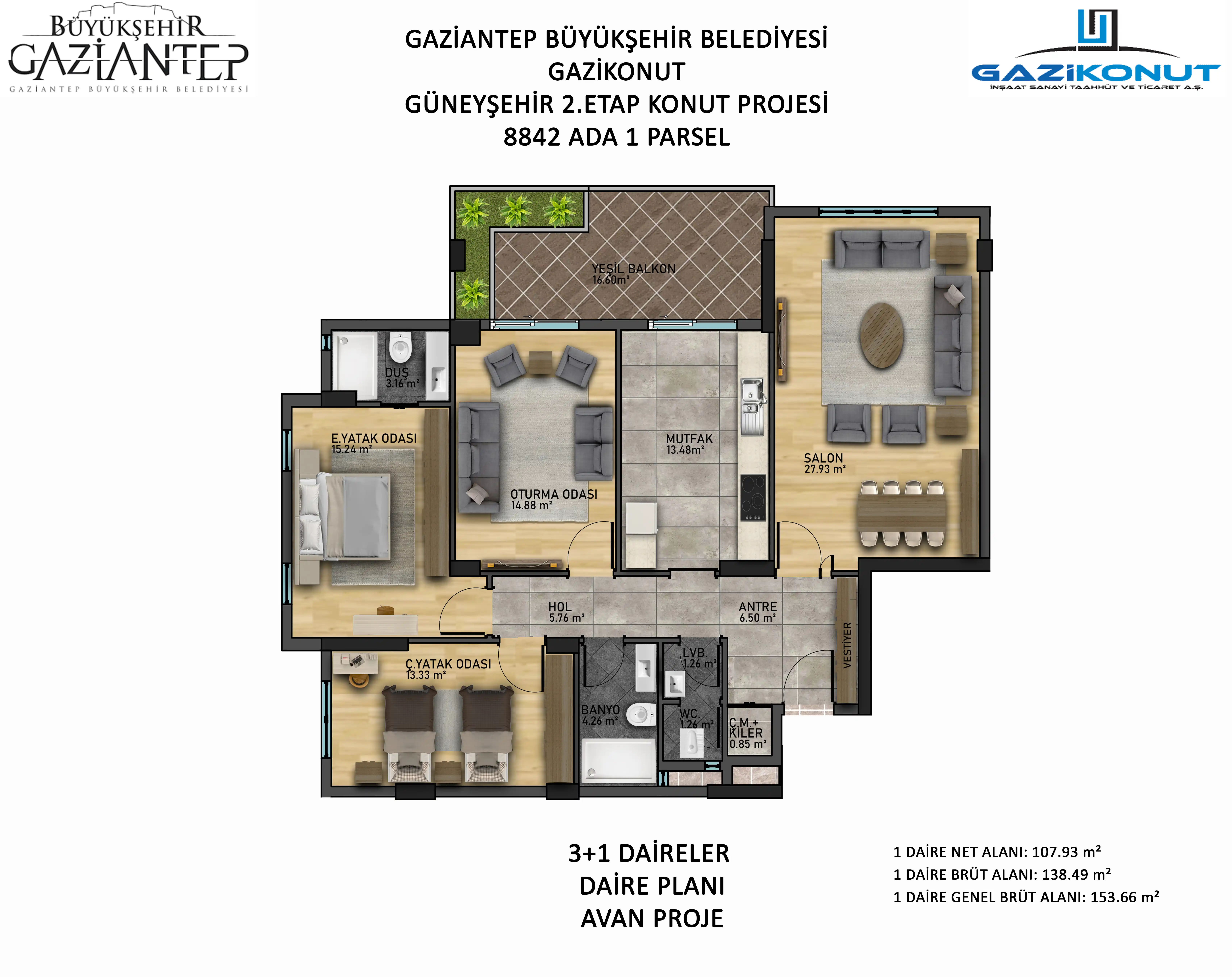belirlenmiş olup, uygulama projesine göre değişiklikler gösterebilir. Brüt ve